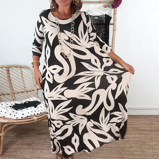 🌼Elegáns, bő, kerek nyakú, mintás női ruha