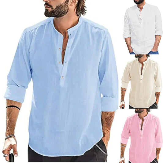2025-ös férfi alkalmi pamut vászon hosszú ujjú ing