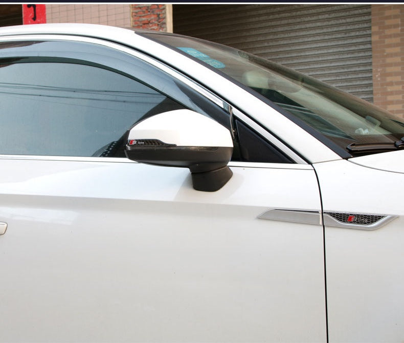 🚗 ✨ Szénszálas visszapillantó tükör védőcsíkok saját logóval – Robusta. Szembetűnő .