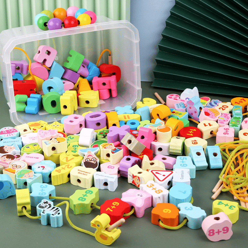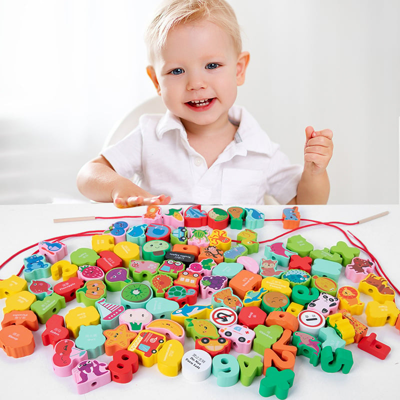 Nagy fűzős gyöngyeink ösztönző szórakozást kínálnak tanulás közben. Sok darab élénk színű nagy fagyöngyöt tartalmaz állatokban , gyümölcsökben, közlekedésben, betűkben és számolásban .