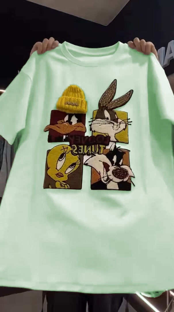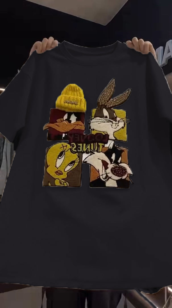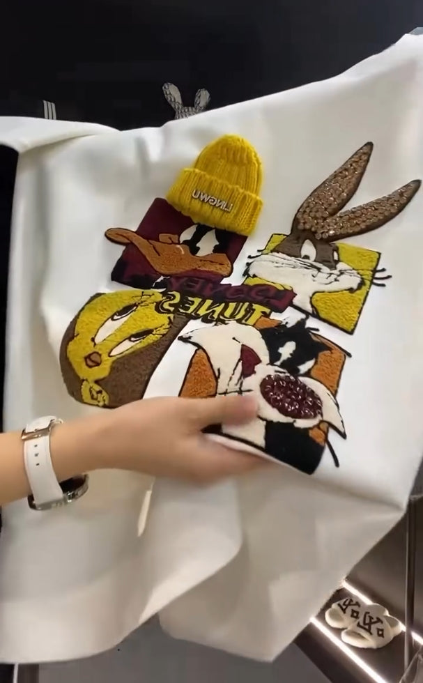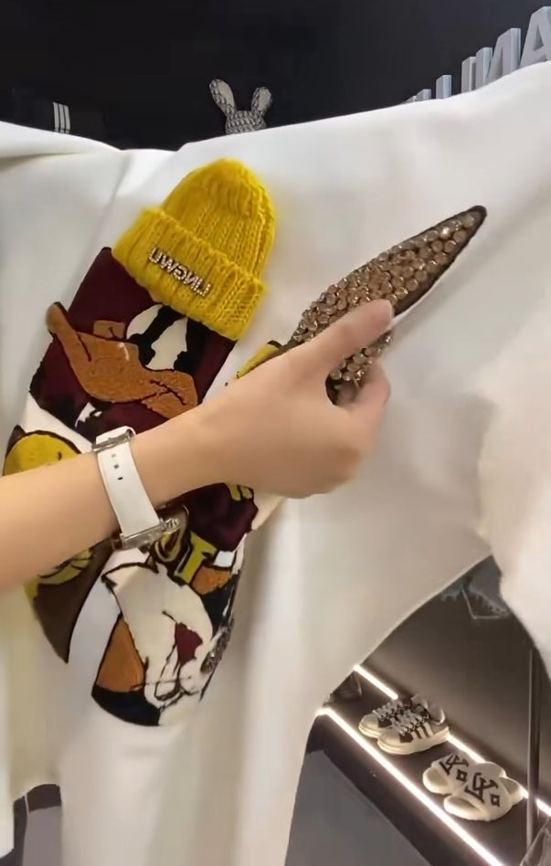 🍭 Imádnivaló rajzfilm flitteres mintás pulóver