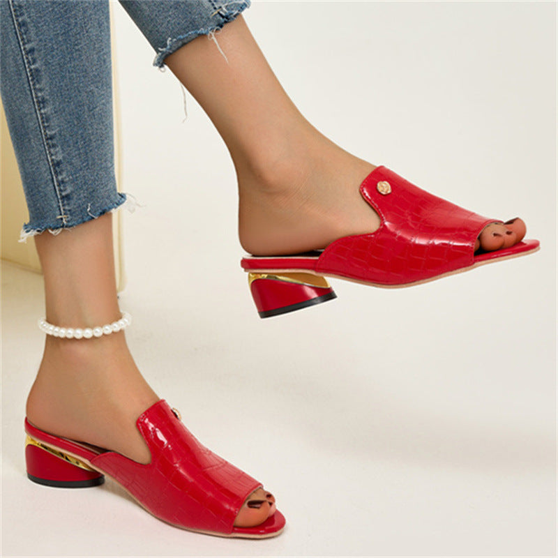 😍Utolsó nap 50% kedvezménnyel😍 - Divatos női ortopéd bőr szandál nyitott orrokkal és vastag sarokkal