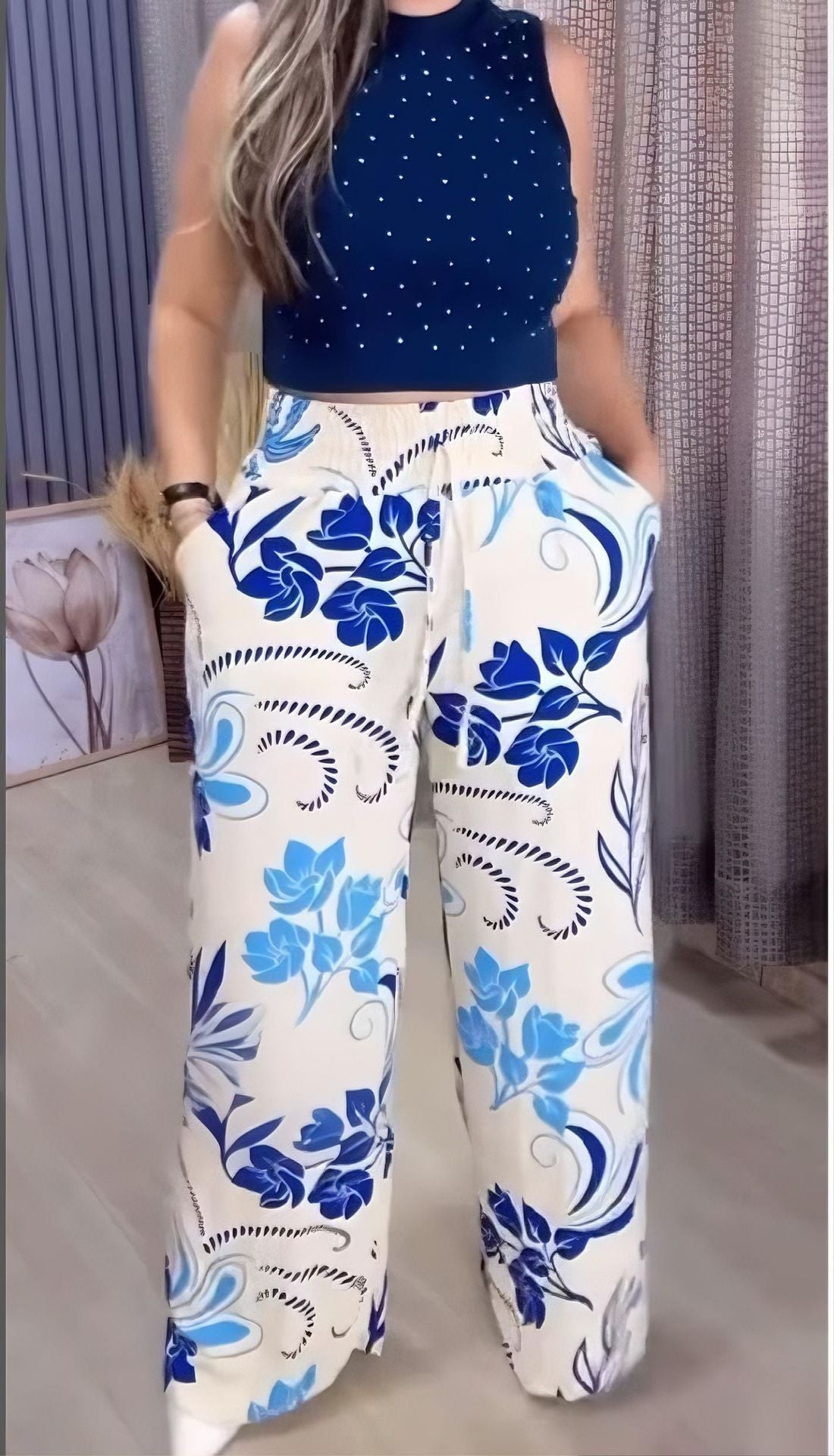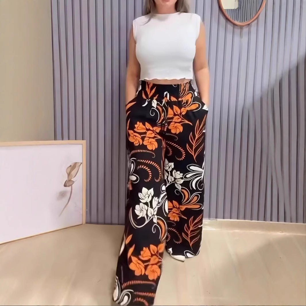 2025 Nyári új, nyomtatott széles szárú nadrágok
