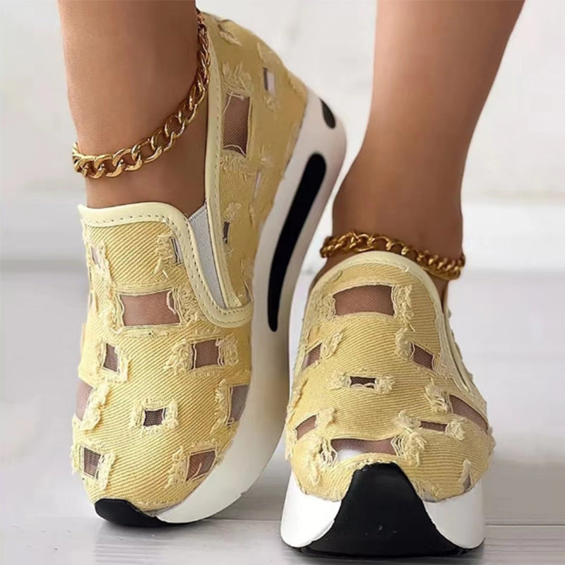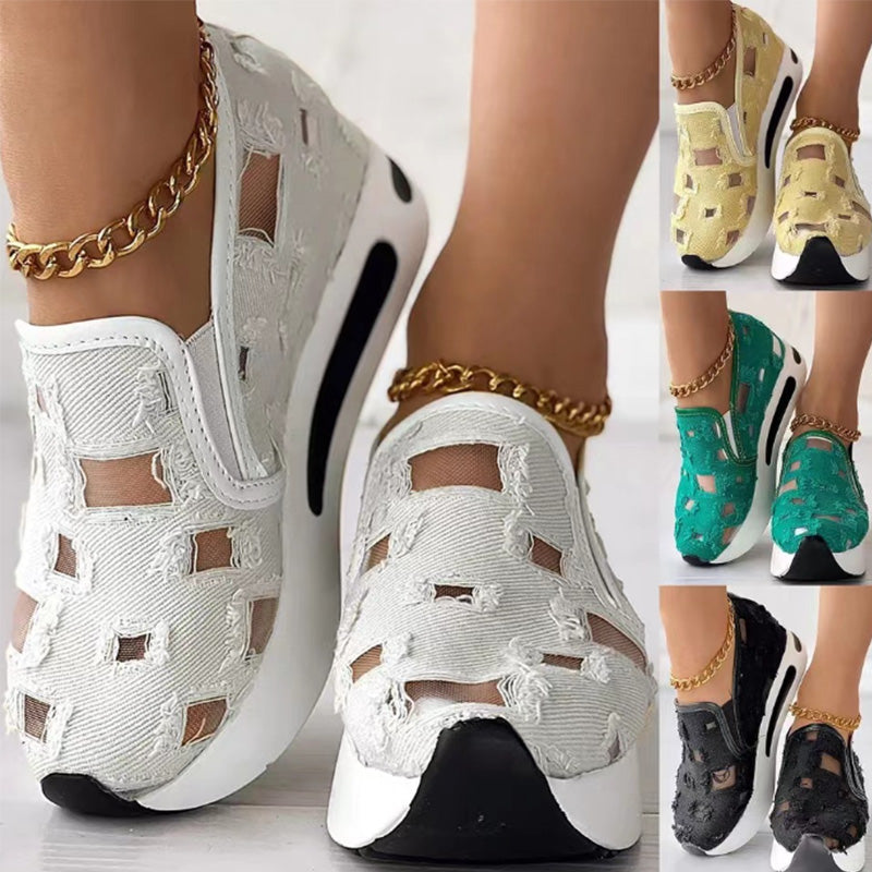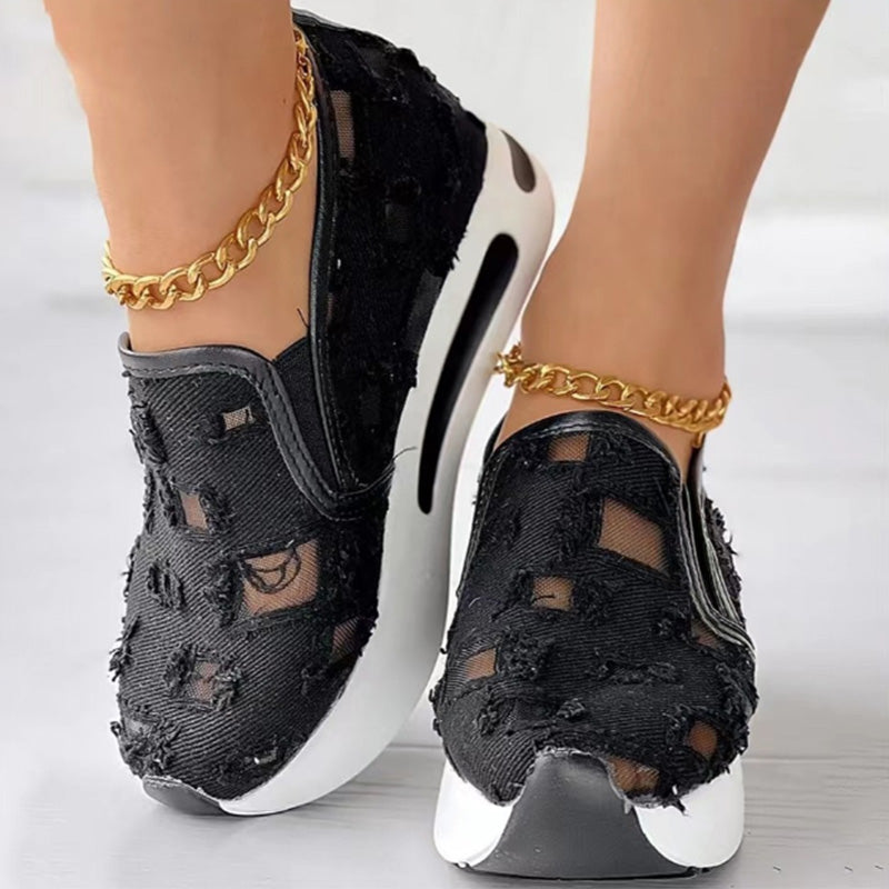 LÉLEGZHET könnyedén a légáramlással optimalizált hálós felsőrésszel - A könnyű vászonhálós szerkezet kiváló szellőzést biztosít, így a lábad hűvös és száraz marad a forró nyári napokon is. Nincs többé izzasztó kellemetlenség - csak egész napos frissesség.