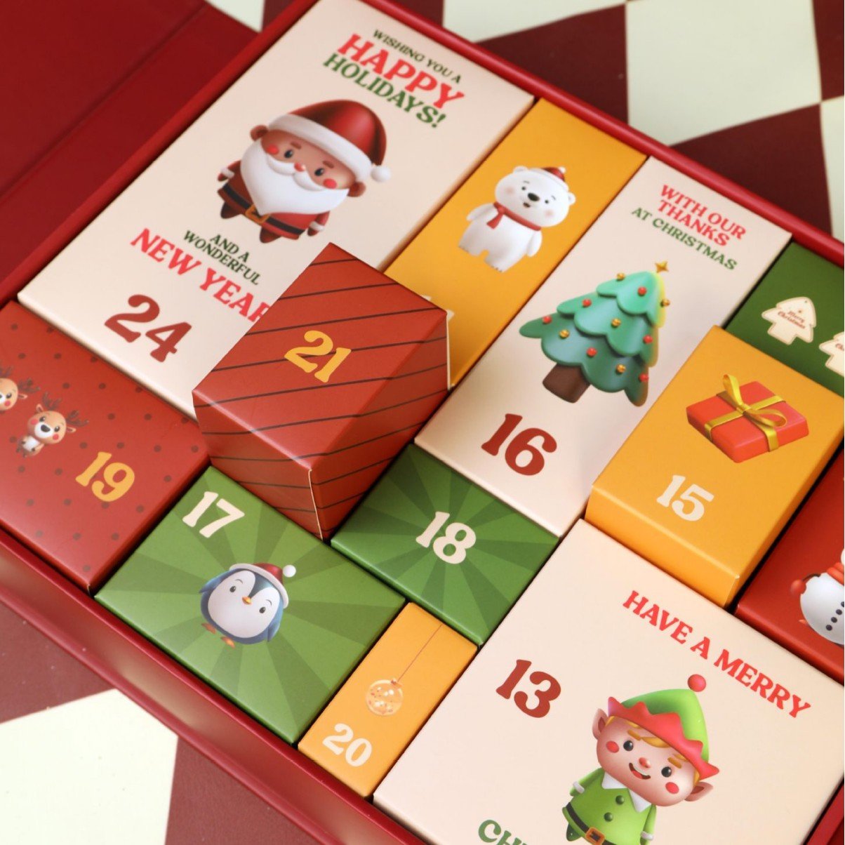 - 24 számozott mini doboz a mindennapi meglepetésekhez