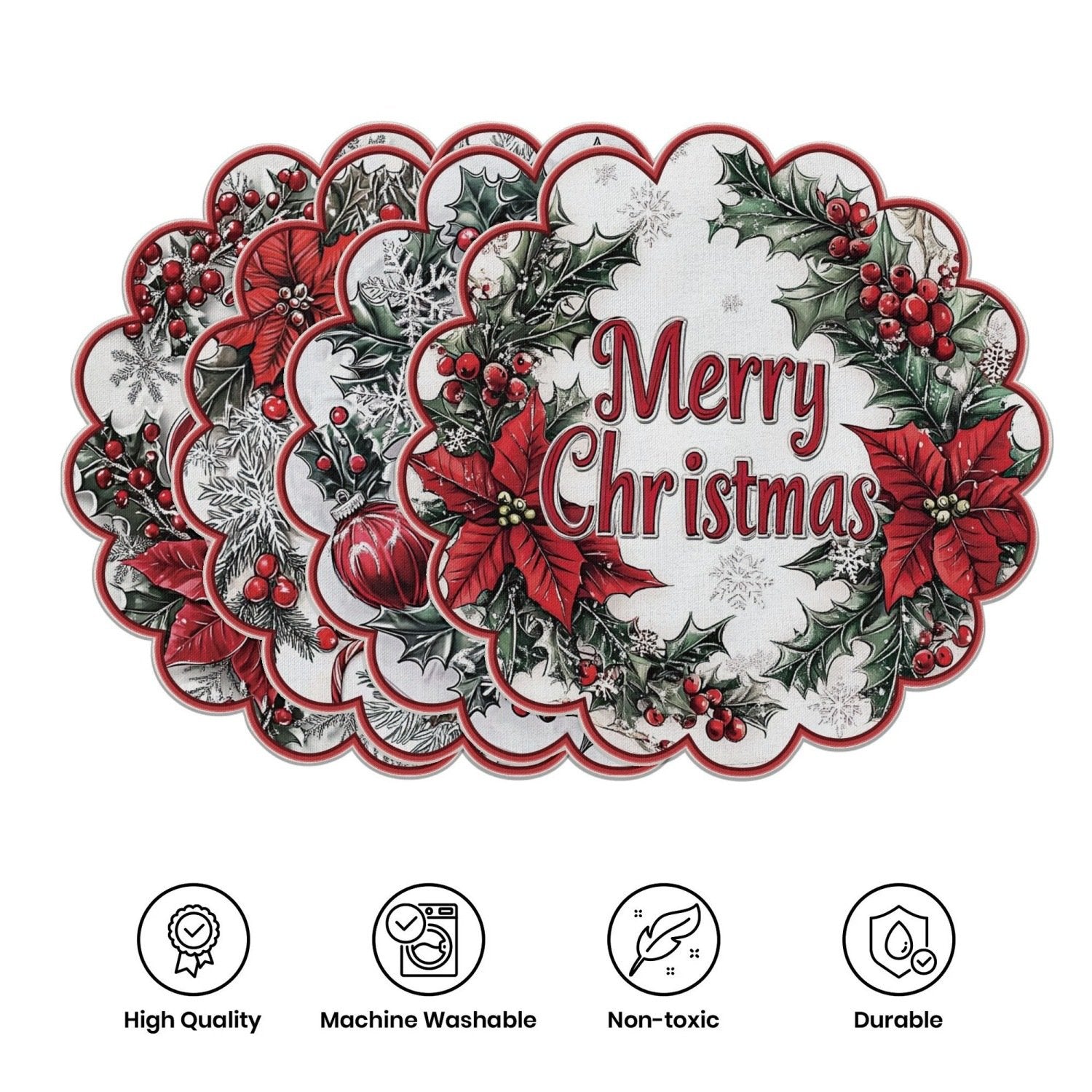 【 Unikalny wzór 】: Zawiera zimowy wzór poinsecji i szyszek, dodając sezonowego akcentu podczas posiłków.