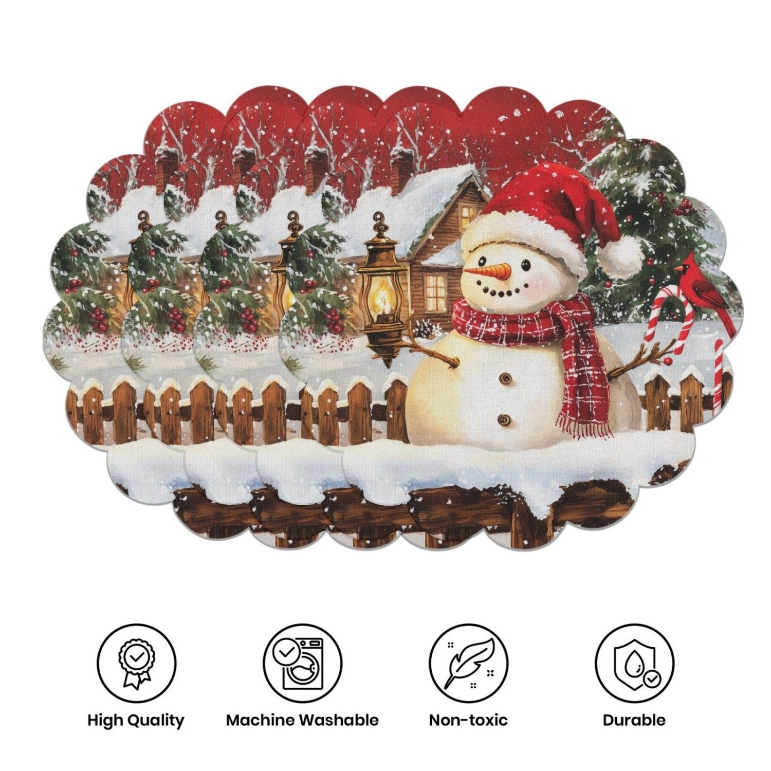 【 Tkanina antypoślizgowa 】: Wykonane z antypoślizgowej tkaniny, te podkładki pozostają bezpiecznie na miejscu podczas posiłków, zapewniając stabilność.