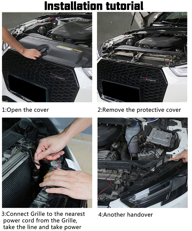 - Használat: Csatlakoztassa a tápkábelt az autóhoz a hűtőrács eltávolítása nélkül. Szervizben is kérhet segítséget a beszereléshez.