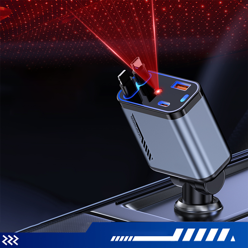 📱 Többfunkciós autós töltő gyorstöltéssel és visszahúzható kábellel | Minden okostelefonnal kompatibilis