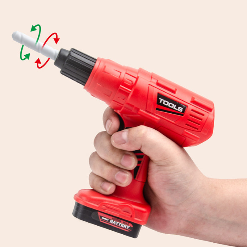 ELEKTROMOS FÚRÓ: Akkumulátoros elektromos fúróval van felszerelve, előre és hátrafelé forgatható. Biztonságos a gyermekek számára, lehetővé teszi számukra, hogy megtapasztalják az eszközök valódi funkcióit, miközben ártalmatlan színlelt játékot biztosít.