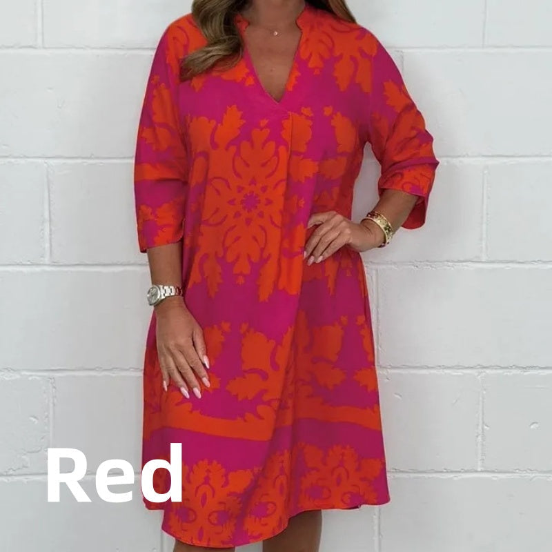 💗 Női divatos ruha V-kivágással és 3/4-es ujjakkal