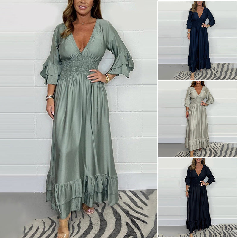 đ2024 Az Ășj maxi ruha szatĂ©n fodrokkal