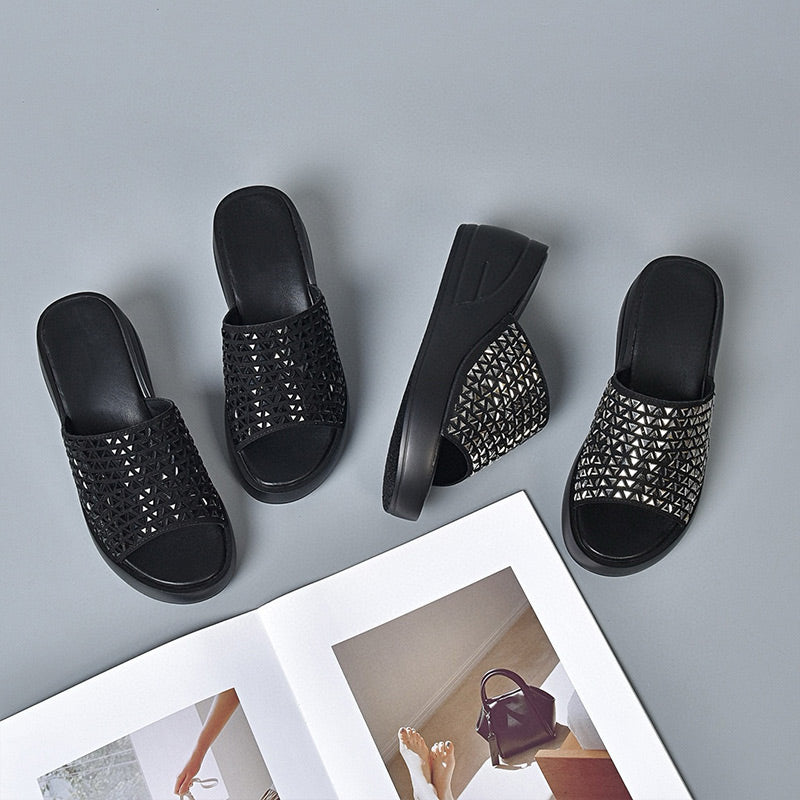 Wyściełana wkładka dopasowuje się do kształtu stóp, zapewniając maksymalny komfort przy każdym kroku. Dzięki temu możesz nosić te sandały na koturnie przez cały dzień, nie odczuwając żadnego dyskomfortu.