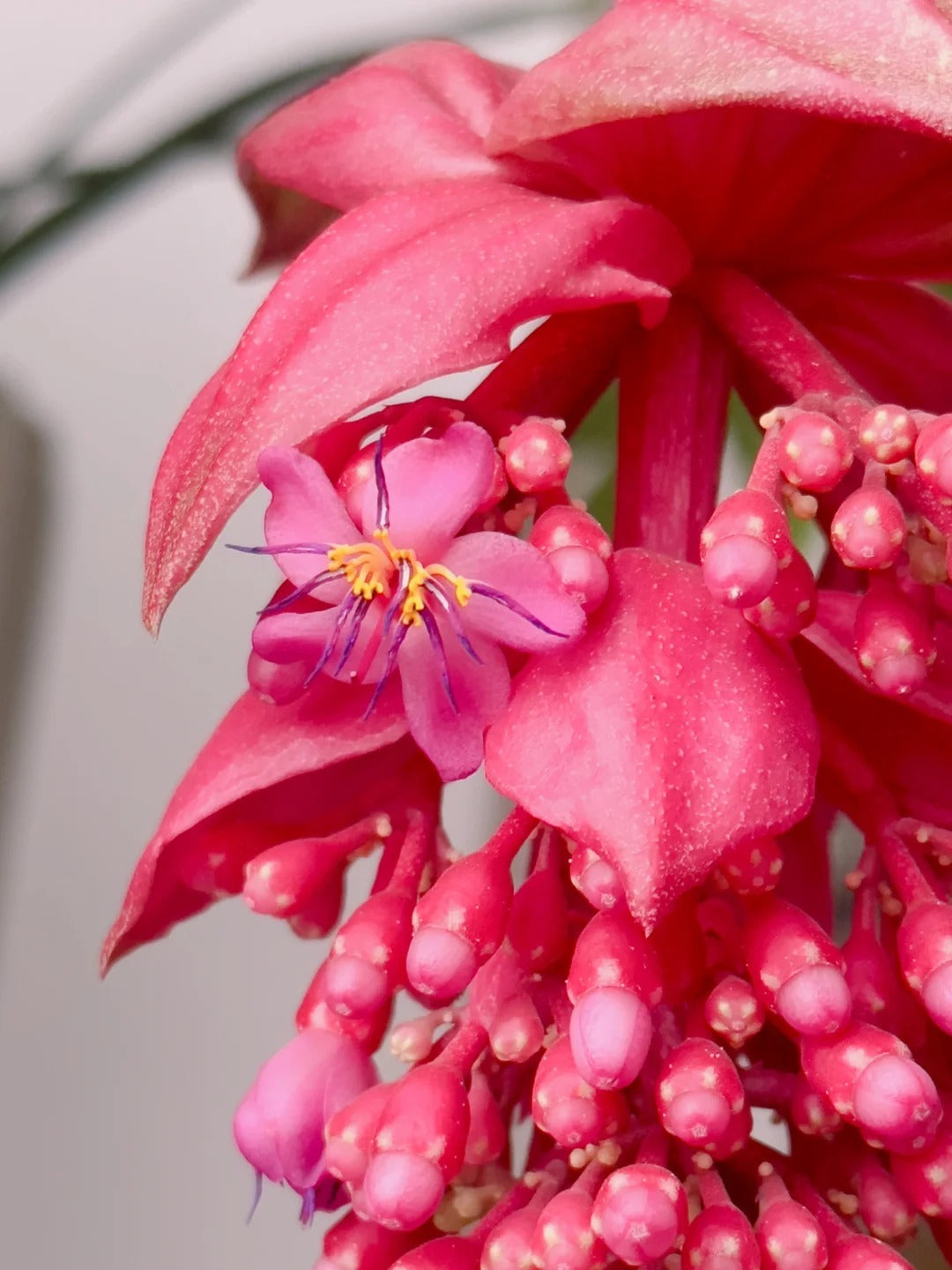 🌺 Látványos virágok : Élénk, lelógó rózsaszín virágfürtöket hoz, amelyek finom szőlőfürtökre hasonlítanak.🌱 Egzotikus vonzerő : Luxus, trópusi hangulatot kölcsönöz beltéri vagy kültéri tereknek.☀️ Imádja az erős fényt : Világos, közvetett napfényben vagy részben árnyékos kültéri körülmények között is jól érzi magát.🪴 Tökéletes konténerbe : Tökéletes cserepekbe, függőkosarakba vagy látványos szobanövényként.🌿 Egész évben érdekes : A fényes örökzöld lombozat szépséget biztosít akkor is, amikor a növény nem virágzik.