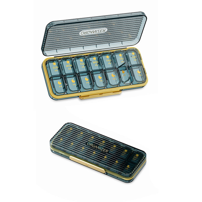 HETI SZERVEZŐ: A heti 7 napos dobozunk négy rekesszel rendelkezik (reggel/ebéd/este), hogy segítsen a hét minden napján a szervezettség megőrzésében. Segítségével előre megtervezheti a hetet, ami nagyon hasznos, és megkönnyíti otthona napi használatának intézését.