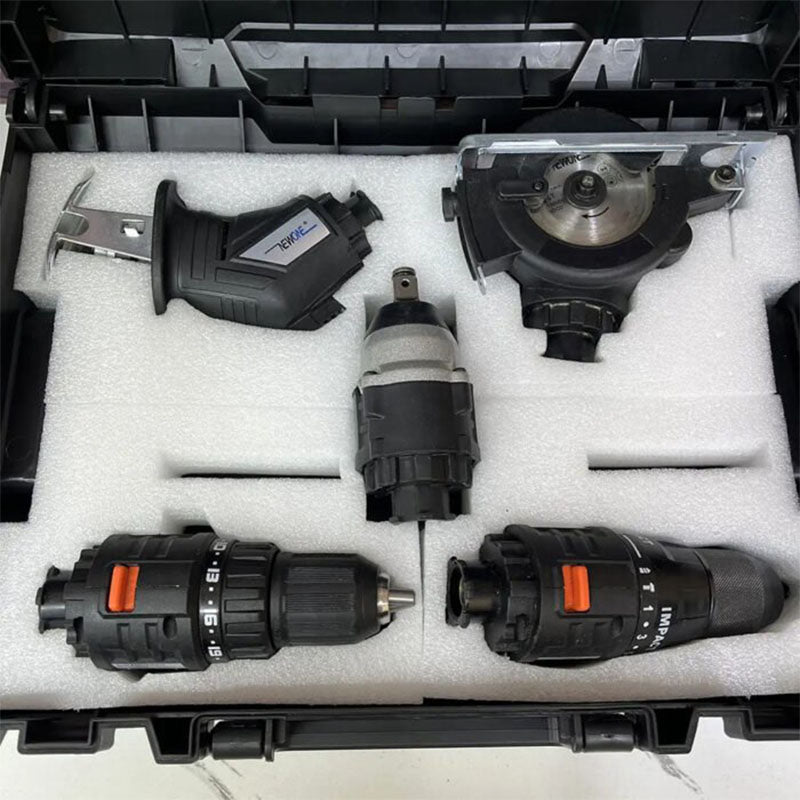 Bemutatjuk 10 az 1-ben háztartási többfunkciós szerszámkészletünket, amely tökéletes partner minden barkácsolási és famegmunkálási tevékenységéhez. Ez az átfogó készlet számos cserélhető szerszámfejet tartalmaz, beleértve a fúrókat, fűrészeket és egyebeket, amelyek páratlan sokoldalúságot biztosítanak a háztartási projektek széles skálájának megbirkózásában.